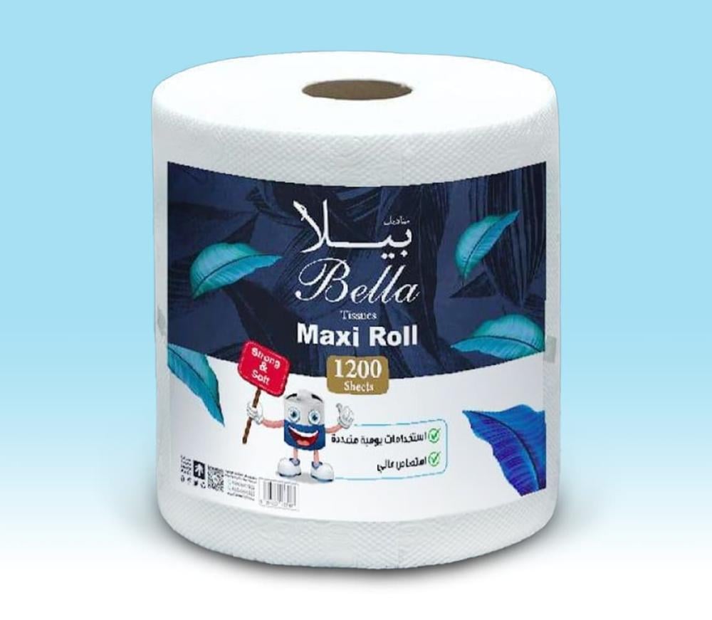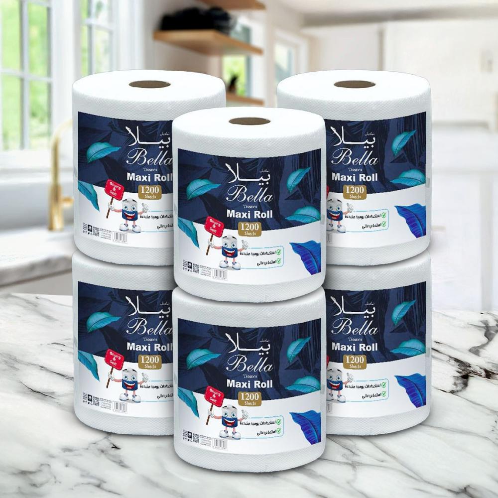 مناديل بيلا ماكسي رول يقدم لفات كبيرة بحجم 1200 شيت، افضل مناديل مصممة لتوفير نظافة مثالية وراحة تدوم، مع أداء امتصاص عالي يناسب جميع استخداماتك اليومية.