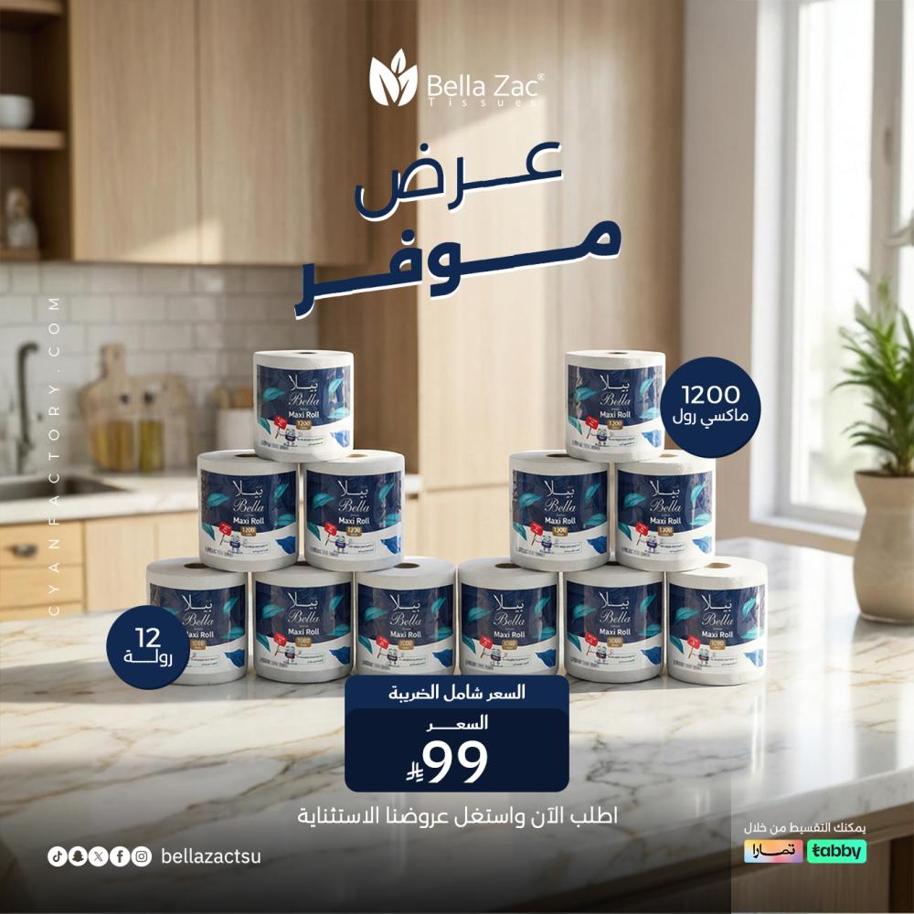 احصل على كرتون مناديل بيلا ماكسي رول من متجر مناديل بيلا زاك لاستخدام يدوم طويلاً وجودة فائقة