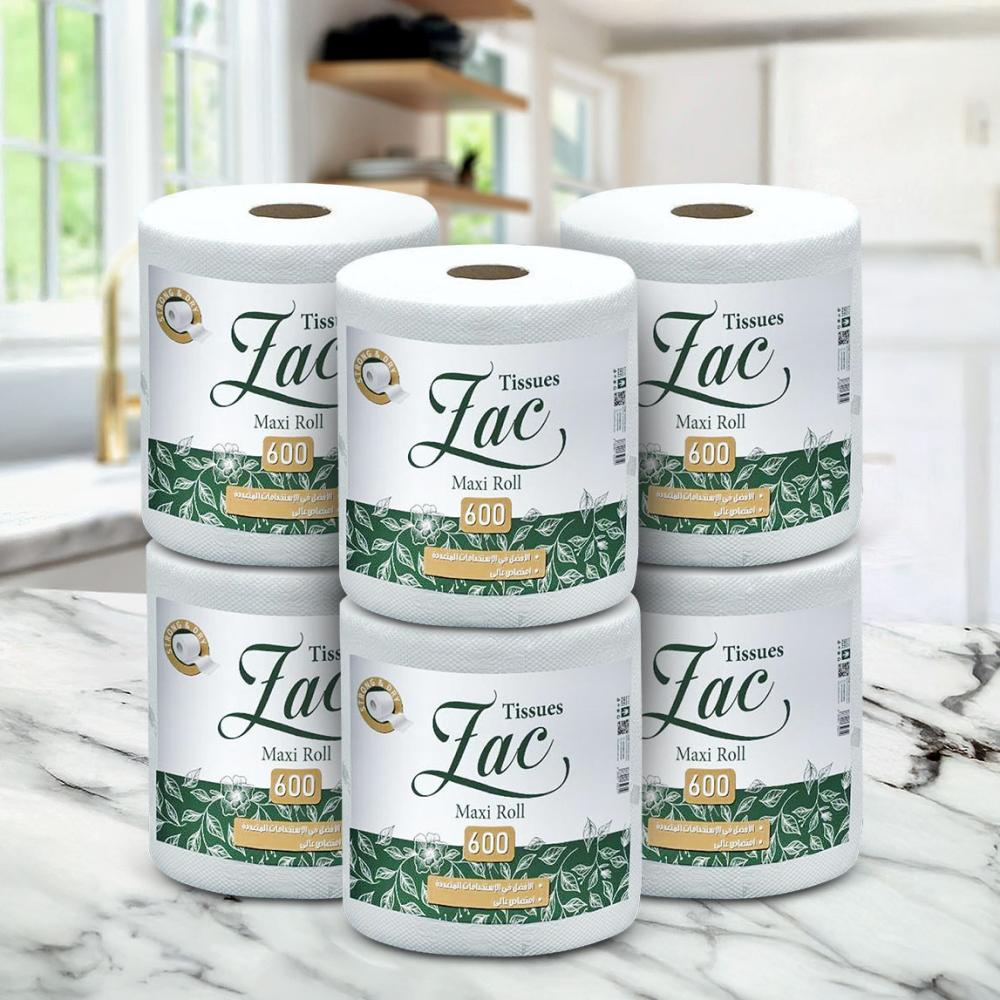 كرتون مناديل زاك ماكسي رول 600 شيت، مناديل رول فائقة الجودة نعومة وقوة امتصاص في كل منديل. افضل مناديل رول مثالية للاستخدام اليومي.